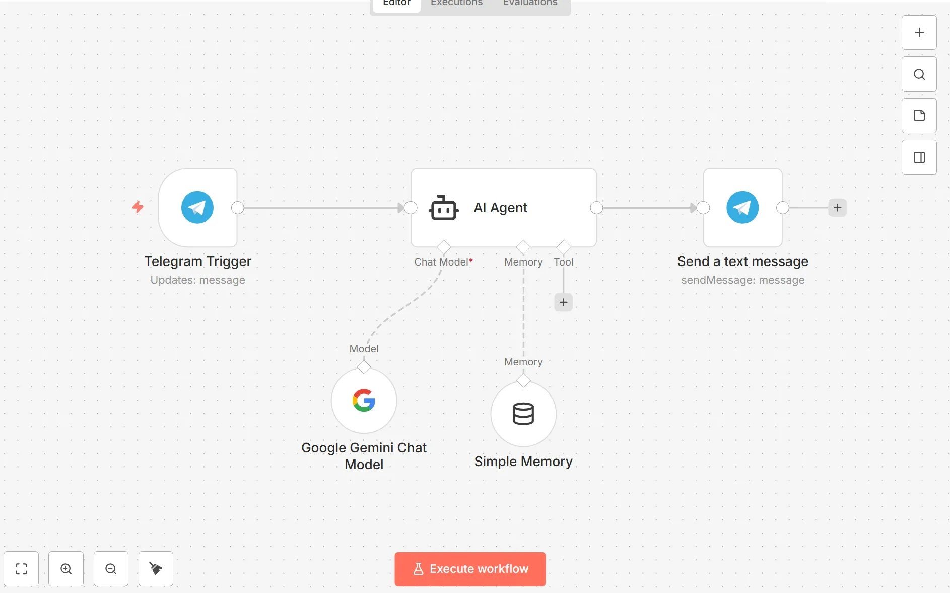 👉 Kết quả: Bạn đã có một workflow tự động kích hoạt khi có tin nhắn mới từ Telegram.